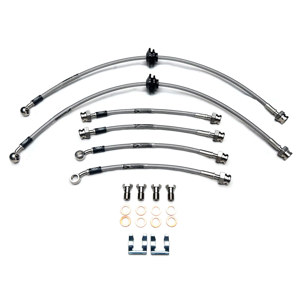 - 6-line braided brake line kit (2x front, 2x mid, 2x rear)