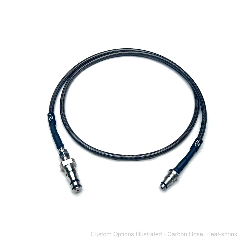 HEL Performance braided hoses are completely customisable! You can select from a range of colours for the PVC outer layer and even select different coloured "HEL" logo tags which are featured on every HEL Performance hose. Additionally, you can add a heat shrink to the end of each line to further improve the appearance as well as adding an additional layer of protection.