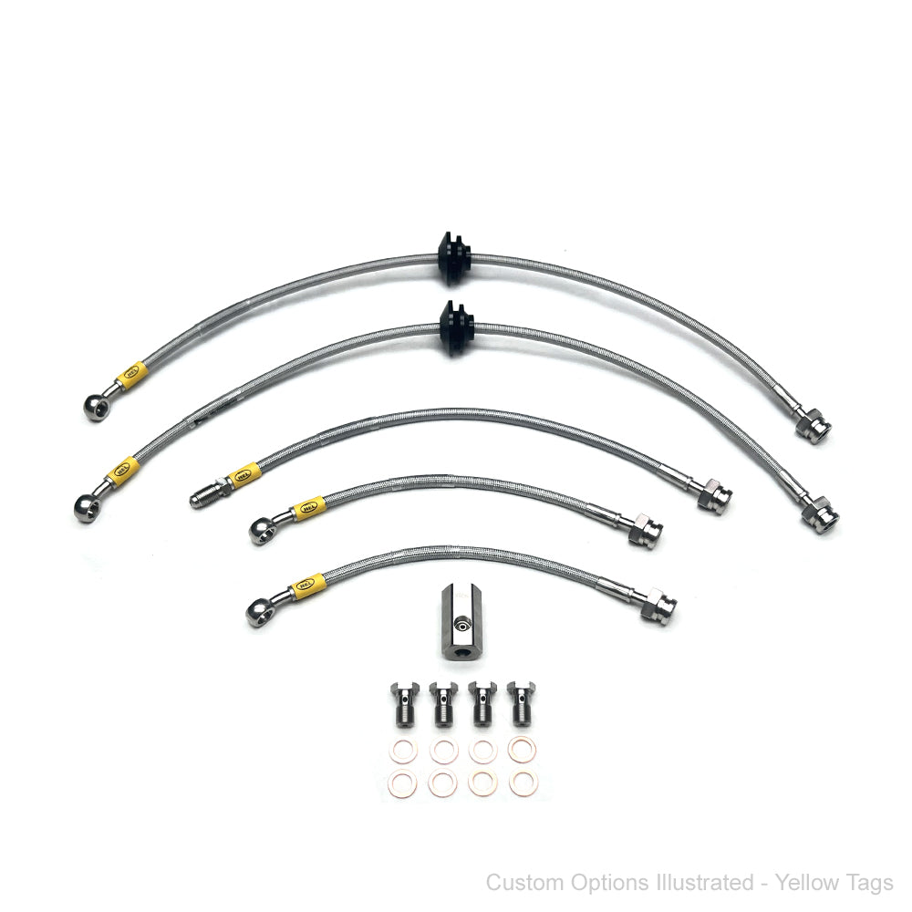 - 5-line braided brake line kit (2x front, 1x body-diff, 2x Rear) + 1x distribution block