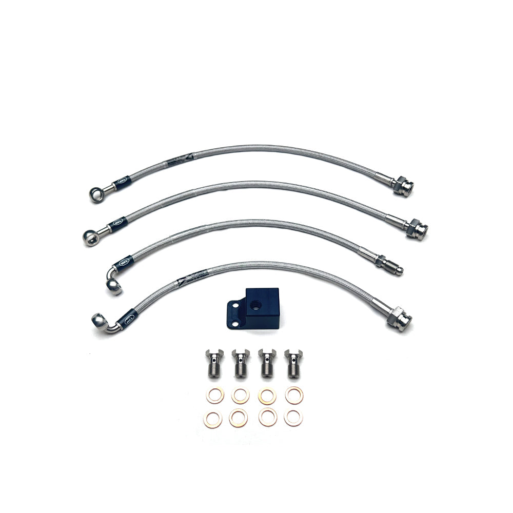 - 4-Line Braided brake line kit (2x Front, 2x Rear)